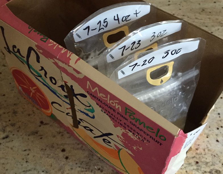 I was right that making your own food, versus buying jarred, is frugal. Unless your baby refuses to eat anything you make — in which case you’ll be buying plenty of jars. This is what my literature said to avoid the food pouches, in order to promote utensil skills. That advice went out the window once I realized she will suck down a 4-oz pouch without flinging half of it back at me.