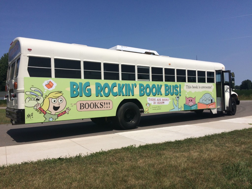 In the summer, a revamped school bus stops at several locations throughout Chesaning and hands out free books and lunch to anyone under 18.