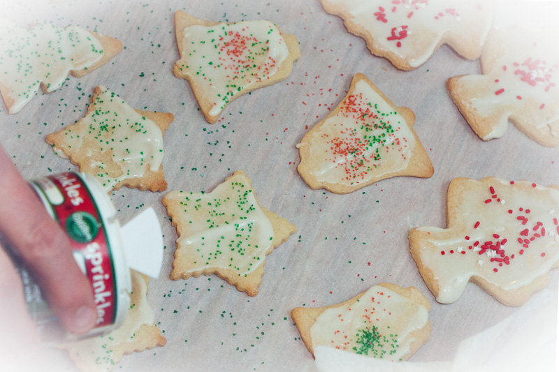 Once cookies are cooled to room temperature, they may be frosted (and sprinkled!):