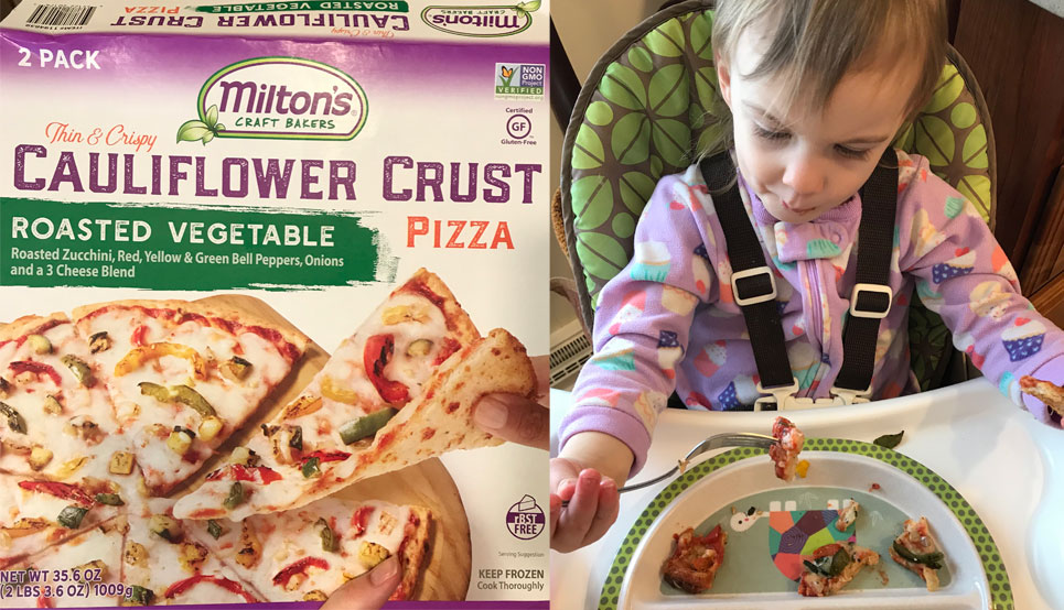 P-I-Z-Z-A is my daughter’s favorite word! No doubt she got her pizza enthusiasm from me. I have to admit that I was hesitant to try cauliflower crust pizza. I really love bread. It turns out that the cheese and the sauce are still super-satisfying, though! Even my cauliflower-hating husband enjoyed these thin-crust pizzas. I plan on making them from scratch – but it sure is nice to have the frozen option in supermarkets now.