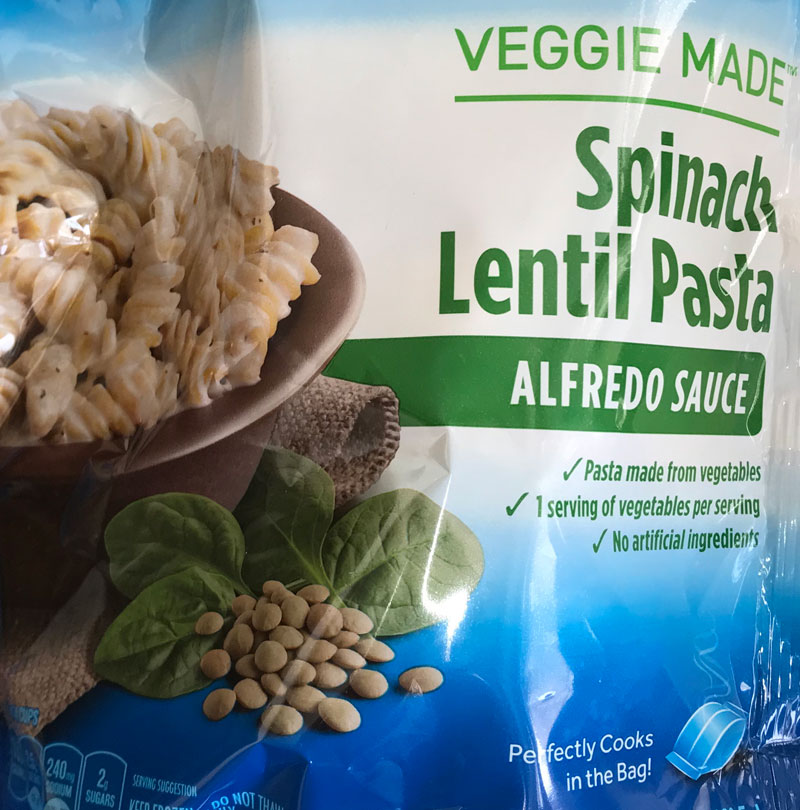 You’ve probably noticed all sorts of legume-based noodles in the pasta aisle lately, such as chickpea or lentil flour. There’s also the spiralizer trend: using actual pieces of vegetables as noodles! I found the best of both worlds in the freezer section: bean and veggie noodles, prepared with sauce. My daughter doesn’t seem to notice that these aren’t her usual boxed macaroni and cheese! Four minutes in the microwave for the win.