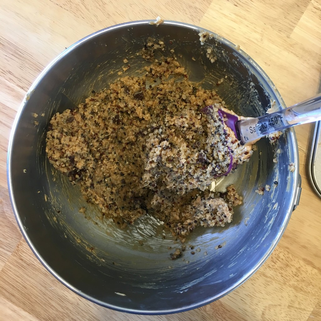 All you need for this recipe is cooked {and cooled} quinoa, peanut butter, honey, semi-sweet chocolate chips and a big bowl! That’s it. Nothing fancy. Just straight-forward yum!