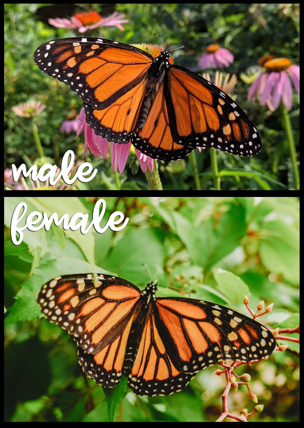 One last factoid for you: once the butterfly has dried out its wings, you can tell whether you have raised a male or a female. Males have distinctive dots on their hind-wings that females don’t have.