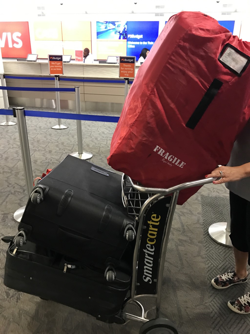 3. Baby Items – I was never one of those people brave enough to rent a car seat, so if you’re like me, invest in a protective bag for the car seat(s). I found this great one on Amazon, the $15ish was well worth it when after the first flight, I checked it and it came back covered in grease and scuff marks. I’d rather buy another bag than another car seat. Car seats and strollers DO NOT count as a checked bag and will fly free on most airlines. Also, if you’re gate-checking your stroller or any other car seats, invest in a protective bag as well (see # 6).